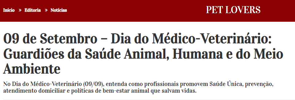 No Brasil, o Dia do Médico-Veterinário é celebrado em 09 de setembro, data que marca a regulamentação da profissão em 1933. Mas, mais do que uma comemoração, essa é uma oportunidade de refletir sobre o impacto diário que os médicos-veterinários têm não apenas na vida dos animais, mas também na saúde das famílias, na economia e no equilíbrio do meio ambiente.